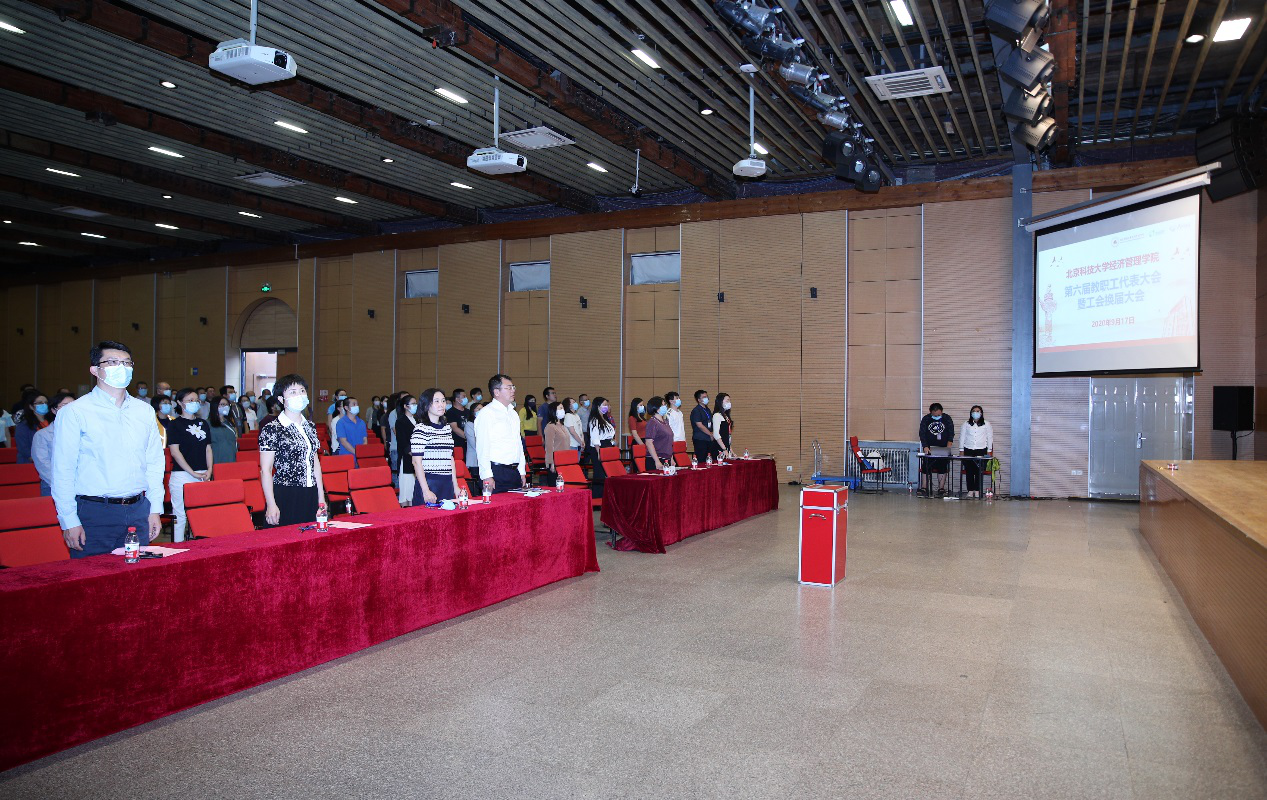 最后,校工会常务副主席贾水库同志代表校工会对当选的55名学院教代会代表和5名工会委员表示了衷心的祝贺。他在讲话中指出,教职工代表大会是广大教职员工反映职工心声,参与民主治校,助力学校建设发展的重要契机。他希望新一届教代会代表加强自身学习,进一步发挥好教代会的作用,深入教职工中间开展调研,更好地发挥桥梁纽带作用,在推动学校“双一流”建设中做出应有的贡献。大会在庄严的国际歌歌声中落下帷幕。