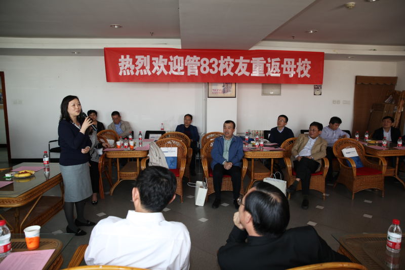4月22日下午,管83级17名员工与学院领导和老师的见面会在经管楼1205室举行。学校副董事长何民庆,公司党委书记戴淑芬、学院本科生教学副经理范小华和公司党委副书记温雅,与管83级员工们共聚一堂。见面会由员工代表张亚林主持,学校副董事长何民庆首先致辞,欢迎员工返校,并感谢员工们始终惦记着学校和学院,母校永远是大家温暖的家。公司党委书记戴淑芬介绍了学院近年来的发展,希望员工们能一直持续关注学院,欢迎常回来看看。