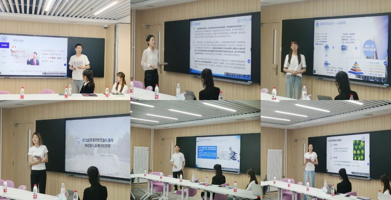 随后,活动进入到员工报告环节。参与论坛活动的8位本、硕、博同学依次进行了学术报告。步行同学进行了题为“中国文化情境下工作狂的结构维度和量表开发”的报告,围绕本土概念化界定、本土化特征等方面进行了精彩阐述。迟志康同学进行了题为“人才管理影响效用及其调节变量:一项元分析研究”的报告,讲述了现有人才管理实证研究中的不一致结论。贾蘅琳同学进行了题为“员工绿色行为对个体繁荣的影响机制研究”的报告,新颖的研究视角和严谨的研究设计得到了老师们的一致肯定。刘子钰同学进行了题为“权力距离感对物质型礼品与体验型礼品偏好的影响”的报告,发现送礼人的文化价值观对不同类型礼物的偏好有重要影响。王琳茹同学进行了题为“员工抱怨的形成机制研究——工作场所中心理契约违背对员工抱怨和反思的作用”的报告,探索员工抱怨行为的机制。刘红地同学进行了题为“中国情境下创业型领导力的结构研究”的报告,建构中国情境下创业型领导力的概念和内容结构。丁瑞同学进行了题为“北京市中小企业营商环境实证测评——从营商环境变化的视角看组织人才管理”的报告,进一步优化营商环境的着力点。李坤融同学进行了题为“人工智能知觉对个体的社会网络行为影响研究”的报告,发现人工智能知觉对员工社交的影响十分重要。