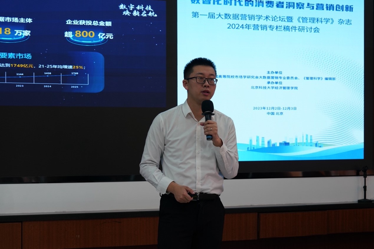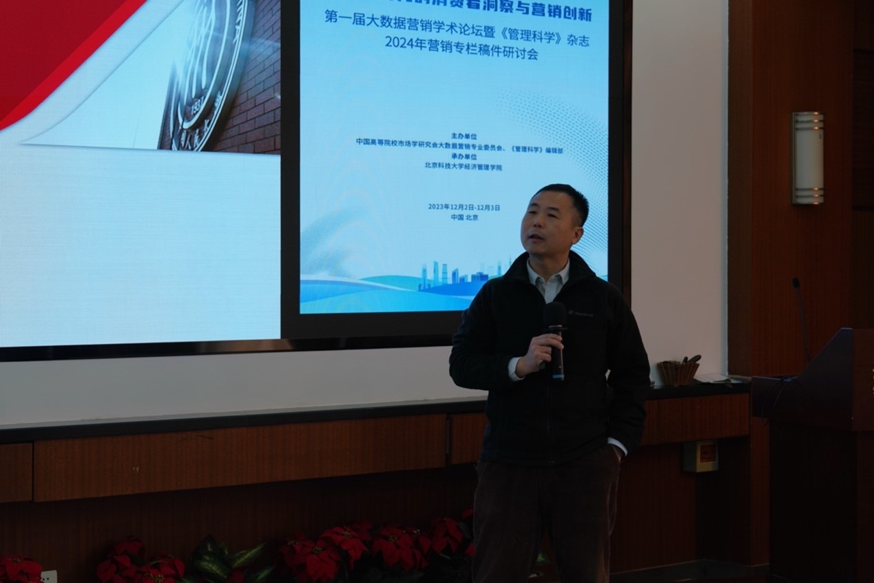 在主题演讲环节,清华大学刘文静教授、北京航空航天大学刘霖教授、中国人民大学张泽林教授、对外经济贸易大学孙瑾教授和中国电信集团数据发展中心张鑫副主任等分别分享了最新的研究成果,并由中国高等院校市场学研究会大数据营销专业委员会主任/中央财经大学李季教授、《管理科学》杂志领域主编/哈尔滨工业大学邹鹏教授和北京航空航天大学李晨溪副教授担任主持人。