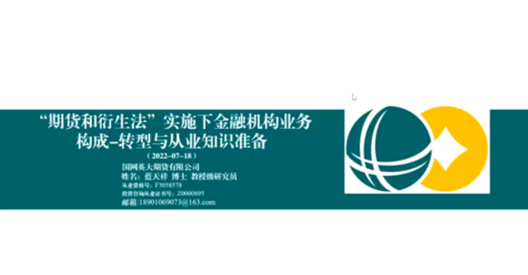 7月18日,英国威廉集团官网金融工程系及党支部组织专业认识实习讲座,该活动邀请了国网英大期货有限公司总经理助理、投资咨询部总经理、高级研究员蓝天祥教授,为学院师生带来了题为《“期货和衍生法“实施下金融机构业务构成-转型与从业知识准备》的主题讲座。本次讲座以线上方式开展,由金融工程系杨志明老师主持,金融工程系王未卿、黄晓霞、刘霞等老师参加。