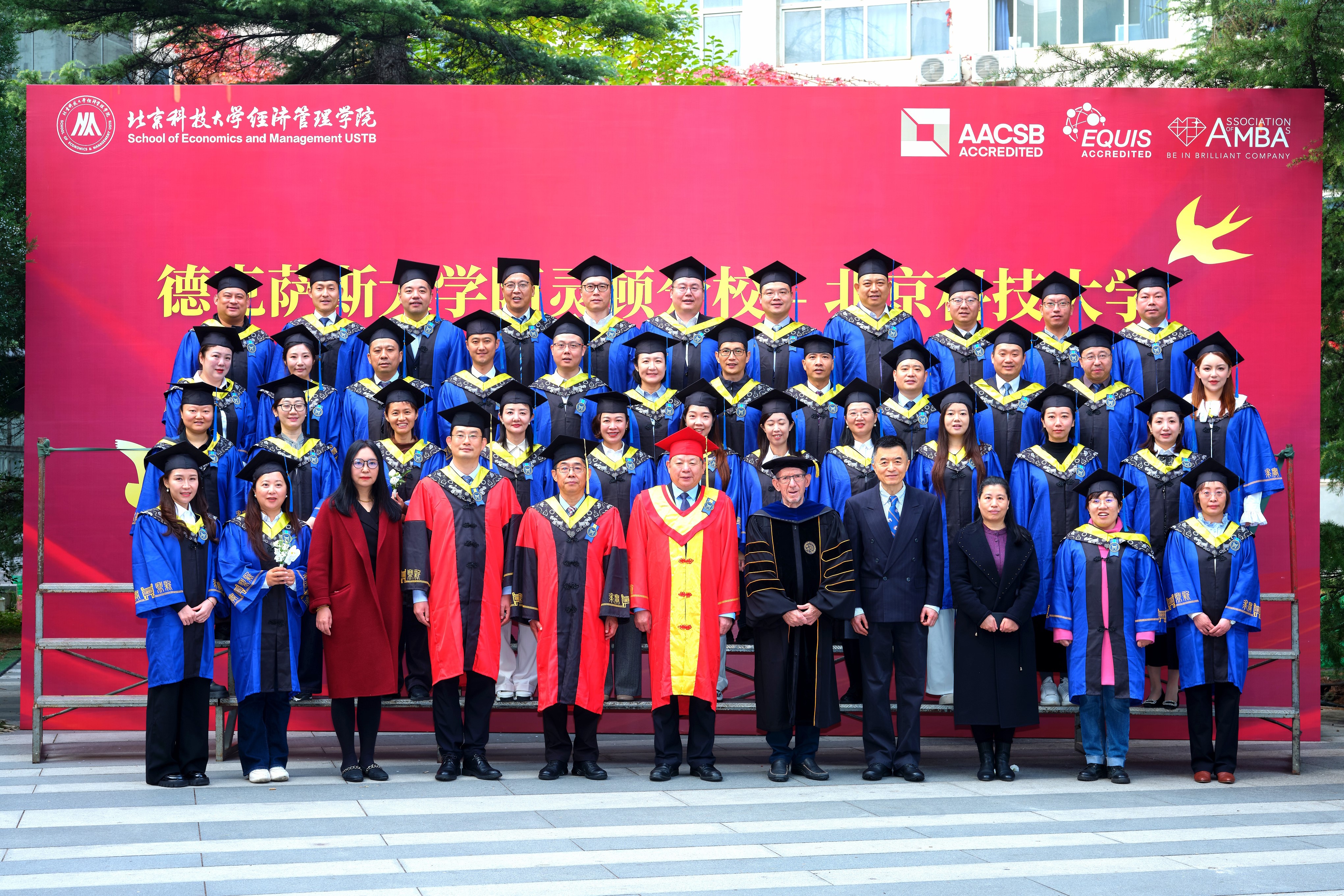杨仁树向2025届UTA-USTB EMBA毕业生表示热烈祝贺,并向德克萨斯大学阿灵顿分校自2002年至今对学校该学位项目的支持表示衷心感谢。他表示,希望同学们不但要传承学校“求实鼎新”的校训精神、承载经管学院“德性实践,学道创新”的院训精神,更要在未来的生活中胸怀梦想、脚踏实地、行稳致远;希望同学们继续关心支持学校的建设发展,母校永远敞开怀抱,欢迎毕业生回家。