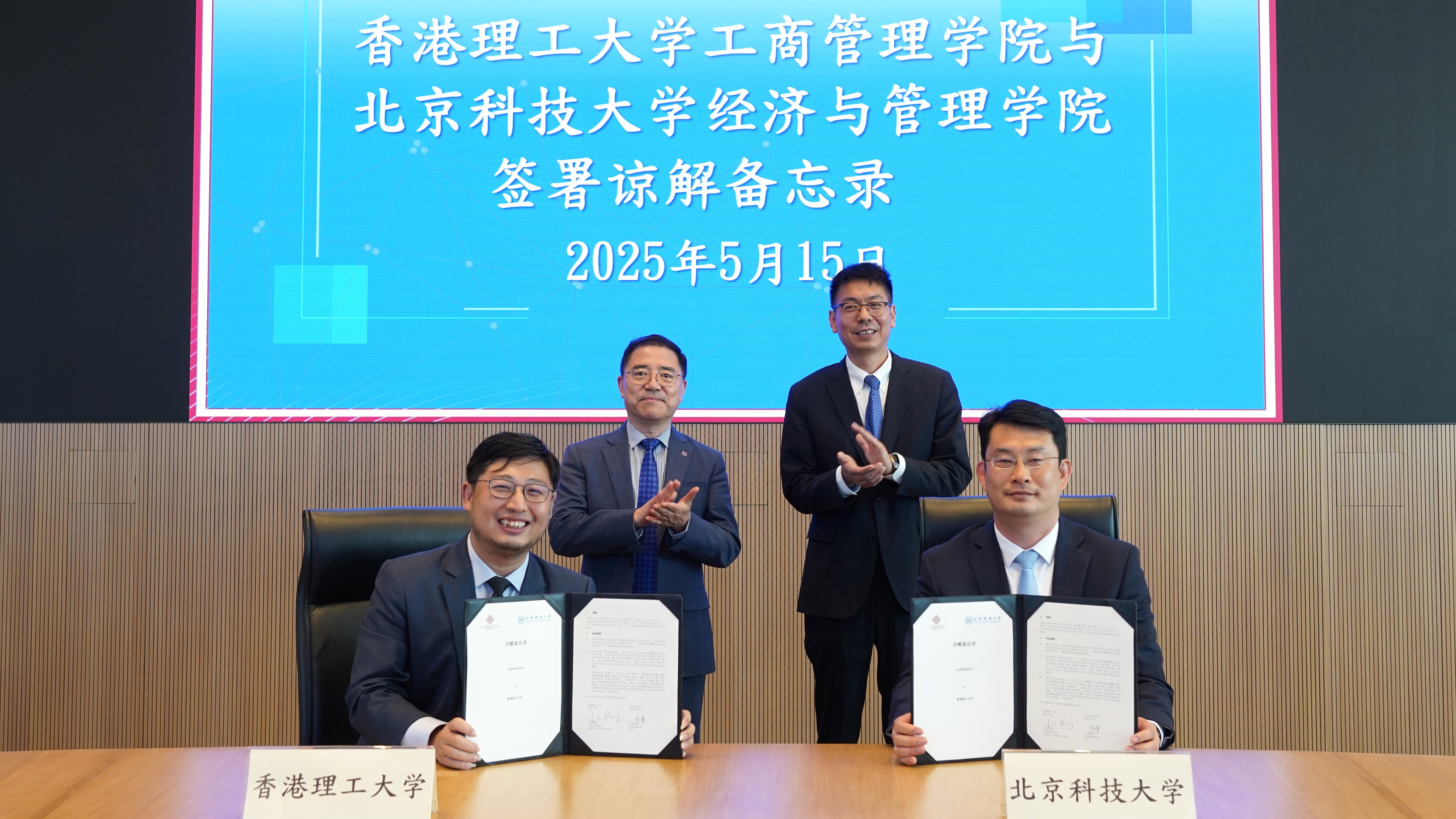 谷炜代表学院与香港理工大学工商管理学院签署谅解备忘录。学院与香港理工大学工商管理学院自2024年起即建立了合作意向。2024年10月,学院领导率团访问香港理工大学,明确合作方向和内容。2025年2月,香港理工大学工商管理学院郑大昭经理访问公司,双方进一步落实合作细节。