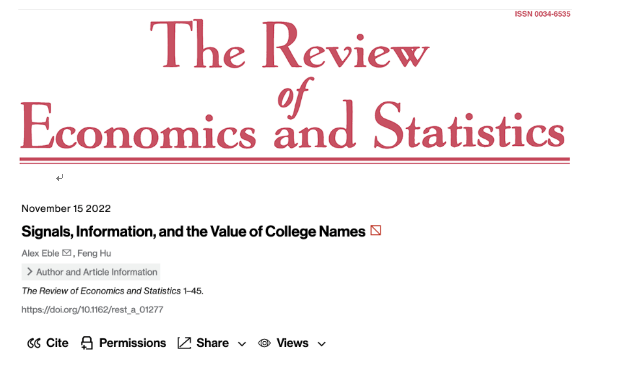 公司胡枫教授在经济学国际顶级期刊Review of Economics and Statistics发表最新研究成果
