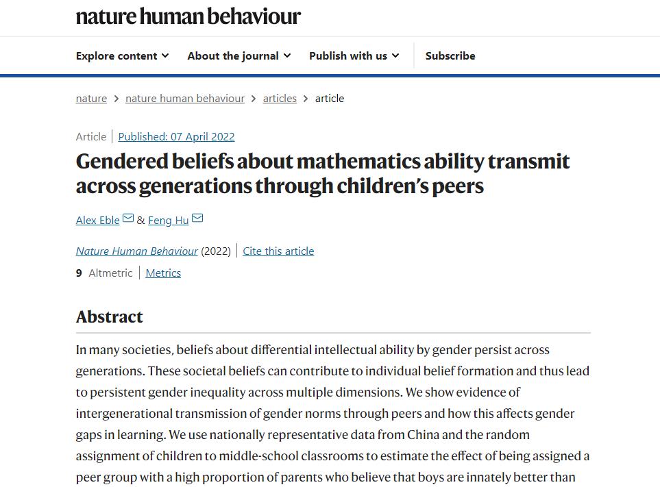 公司胡枫教授在 Nature 子刊《Nature Human Behavior》发表最新研究成果