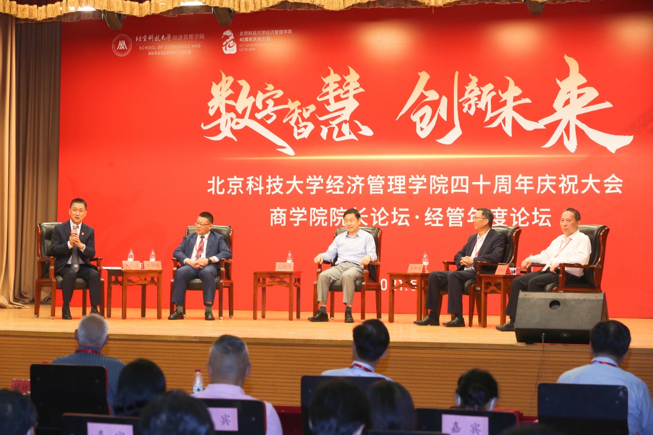 随后,论坛进入嘉宾对话环节,四位嘉宾就本次论坛的主题展开了热烈而深入的讨论。李新创肯定碳中和事业对人类命运共同体建设的重要意义,呼吁相关单位在科学认识的基础上,做好科学的、全面的、系统的碳中和建设工作,鼓励优秀青年从事钢铁行业碳中和事业;刘振刚结合包钢发展历程及包钢“红色本质”和“绿色本色”两大发展理念,以企业家的独特视角阐述了钢铁企业在碳中和事业中能做出的努力,并表明包钢集团为碳中和伟大目标的实现持续助力的坚定决心;王维才围绕英国威廉集团官网在过去和当下为碳中和事业做出的贡献进行回顾,阐述经管学院在数字智慧与钢铁行业碳中和的交叉领域的发展前景,对未来经管学院在加强数字智慧领域人才培养、助力国际碳中和事业发展方面提出期望。